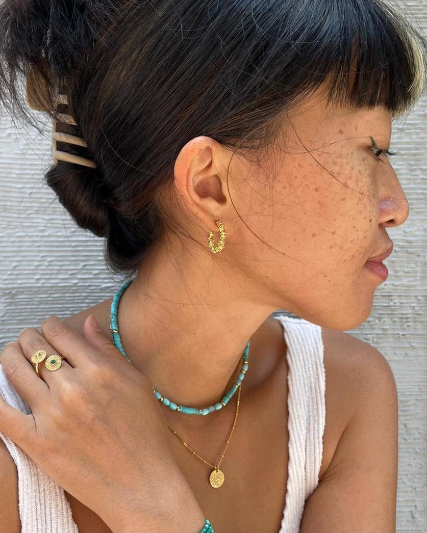 Make a statement with these gorgeous gold chunky hoop earrings that will turn heads. The edgy design adds an extra touch of texture and interest, making these hoops a unique addition to your jewellery collection. Whether you are dressing up or looking for more casual look, these earrings are the perfect finishing touch to any outfit.